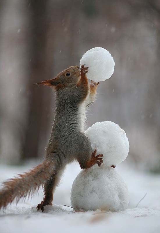 +1 Láttunk már hóembert építő embert, hóállatot építő embert, de ez a hóembert építő mókus mindent visz!