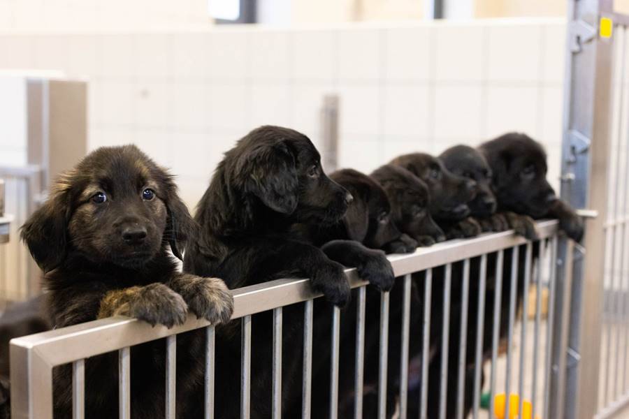 Az angliai vakvezető kutyák kiképző központjában született a rengeteg kiskutya németjuhász anyától és golden retriever apától. A kicsik lehetnek a jövő vakvezető reménységei, de addig is lelkes önkénteseknél élvezik a felhőtlen kölyökkort.