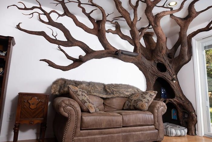 Rob Rogalski olyat készített a cicájának, amin elámulunk! Az amúgy művészi installációkkal foglalkozó férfi egy komplett, élethű fát csinált a nappalijába.