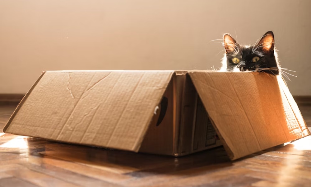Fogadjuk el: a doboz a macskák szentélye. Hagyjunk számukra egy-két dobozt a lakásban, és ne csodálkozzunk, ha néha a legfurcsább helyeken bukkannak fel. Ez nem rendetlenség – ez macskabútor.