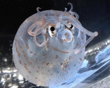 Hihetetlenül bájos ez az apró, mélytengeri lény. Csápjai és mintázatának elhelyezkedése miatt olyan, mintha egy kis mindig mosolygós mesebeli figura, mondjuk malacka lenne.