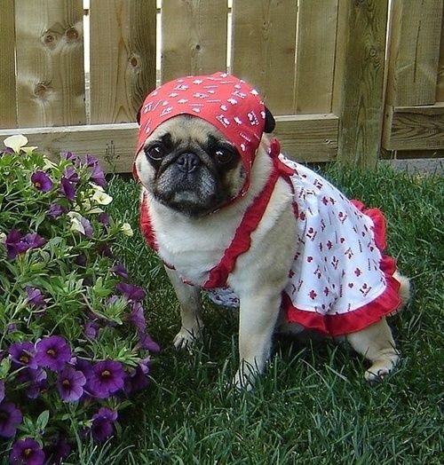 2. Egy mopsz, aki követi a tájegységnek megfelelő divattrendet: