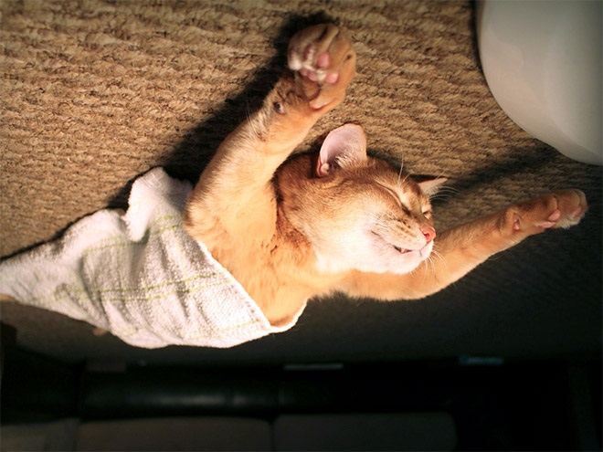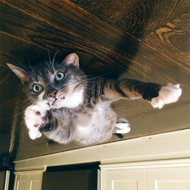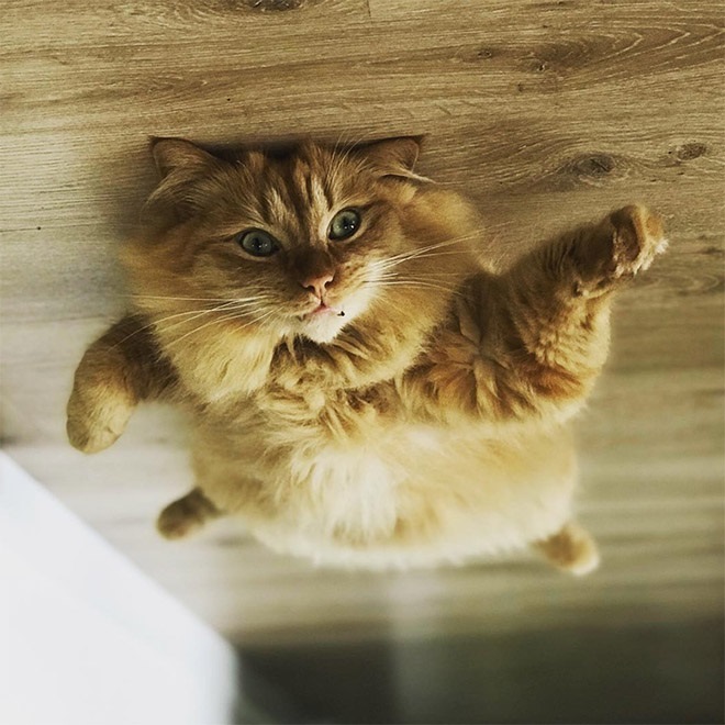 Ahhoz, hogy a cicád úgy nézzen ki, mint plafont elért lufi, nem kell mást tenned, csak lefotózni a padlón fekve, majd megfordítani a képet. Akkor már láthatod is milyen édes a macsekod lufiként: