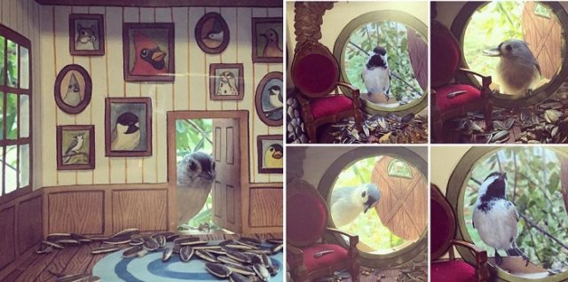 A képzőművész Jada Fitch olyasmit alkotott, ami kuriózumnak számít: apró díszes házikókat épített madarak számára. Kartondobozokat dekorált különféle elemekkel, majd a dobozokat az ablaküvegre ragasztotta úgy, hogy a szobából ő maga minden eseményt láthasson, dokumentálhasson, ami a házikóban zajlik.