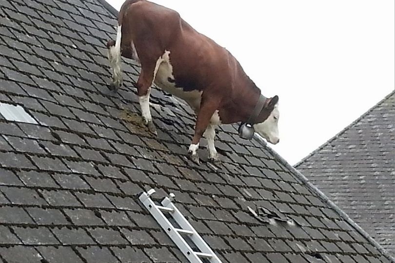 Hogy jutott fel oda, az rejtély, ahogy a lefele is, de egy biztos, a gazda szorgosan cserélhette a tetőcserepeket.
