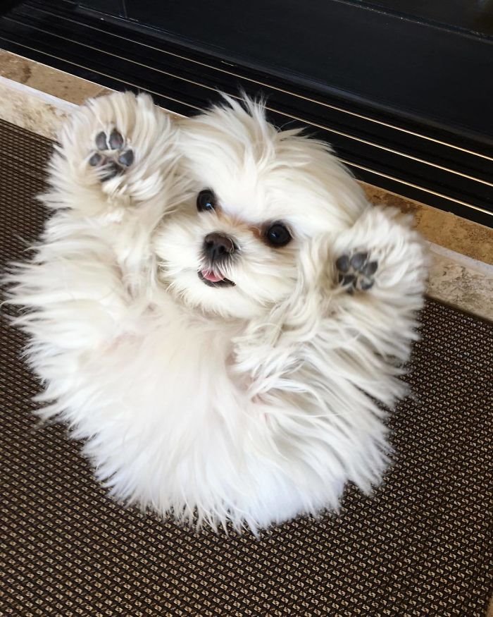 A gyönyörű máltai selyemkutya különleges hobbira tett szert.