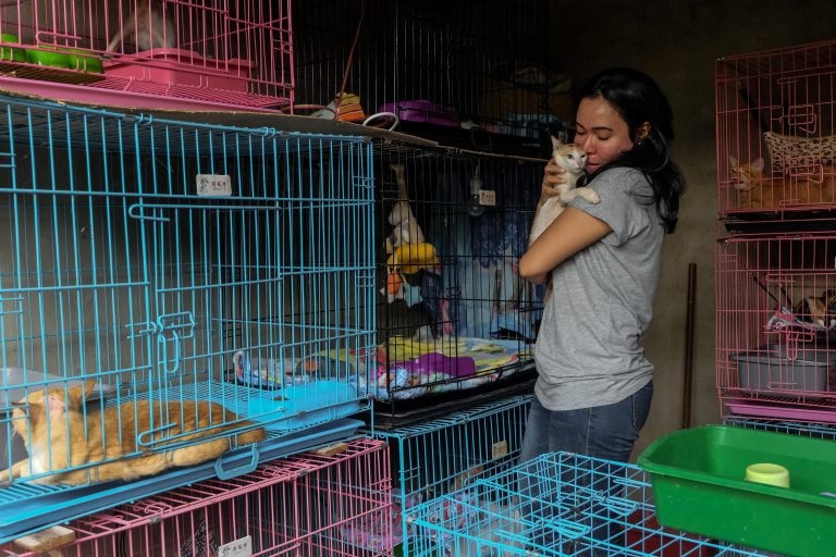 Heti 32 kilogramm macskaeledelt vásárol védenceinek a hölgy. Az otthona mellett létrehozott menhelyen gondozza őket, amiben férje is segít neki.