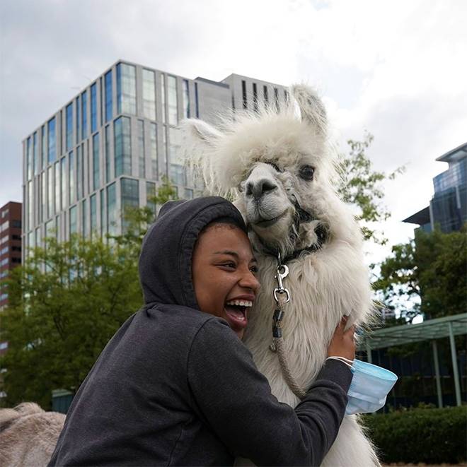 A Black Lives Matter („Fekete életek számítanak”) mozgalom világszerte tiltakozásra késztette az embereket az afroamerikaiakkal szemben tanúsított egyenlőtlen bánásmód miatt. A rendőri túlkapások nagy port kavartak, sok városban tüntetésekkel tiltakoztak ellene. Ebből nem maradt ki Caesar, a bolyhos láma sem, aki nem mellesleg terápiás állat.