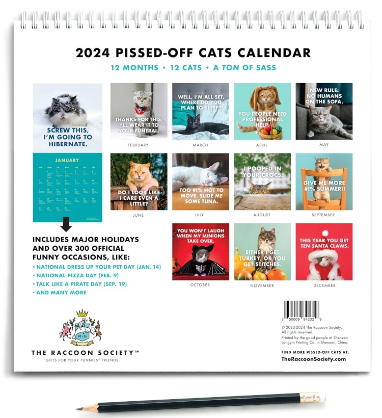 A Racoon Society úgy döntött, hogy a jövő évi naptárában a macskák dühös oldalára fókuszál, így megalkották a 2024-es Morcos Macskák naptárukat.