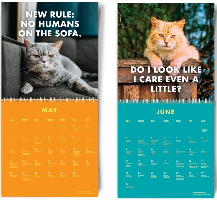 Ez már a második év, hogy a társaság bosszús cicákról szóló naptárat jelentet meg, de a történet még korábban indult. Néhány évvel ezelőtt képeslapokat készítettek, mérges macskák képeihez írtak humoros szövegeket. Hamarosan olyan sok, jobbnál jobb kép közül válogathattak, hogy alig bírtak néhány mellett dönteni. A lapok sikere után fogalmazódott meg a naptár ötlete.