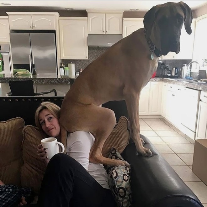 De ez a tény, mintha nem igazán tudatosult volna bennük. Ők még mindig a gazdi kicsi ‘babái’, akik vágynak az ölelésre. Akkor is, ha több, mint 40 kilót nyomnak. Csak imádni lehet őket, annyira bájosak! Nehéz kibírni nevetés nélkül, nézd csak:
