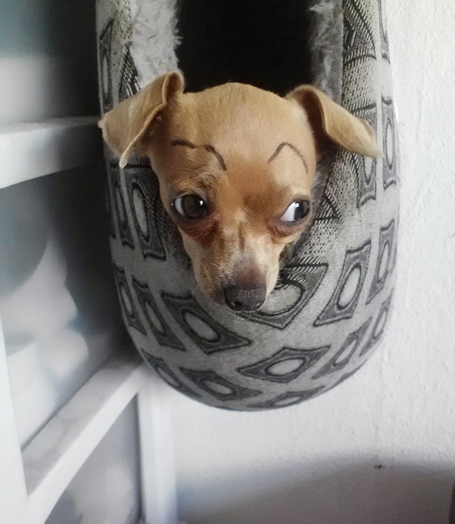 Ártalmatlan bohóckodás szemöldököt rajzolni egy kutyusnak, de annál viccesebb. Furcsa látni, hogy mennyire megváltoztatja az arcukat egy álszemöldök. Csodálkozás, morcosság, báj, csak egy pár azok közül, amik elég szembetűnővé válnak: