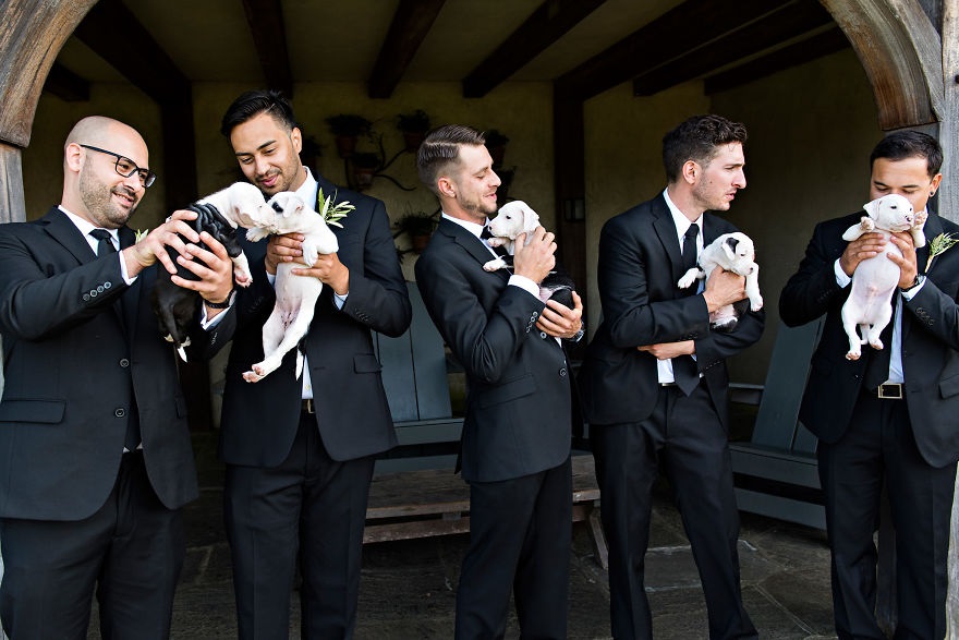 Mire eljött a nagy nap, már öt kiskutyáról gondoskodtak, akik természetesen nem maradhattak ki a ceremóniából sem. Nagyon édes képek készültek róluk: