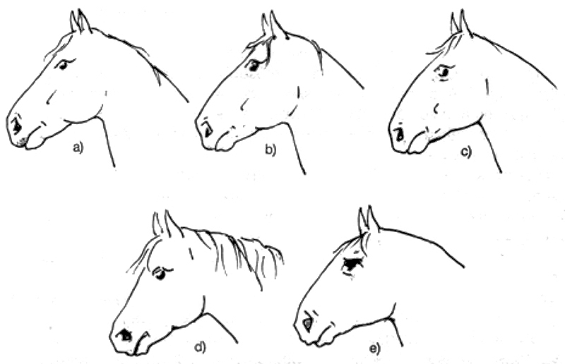 Keresztezett, sodrott lovakon gyakori az ékfej, a juhfej, a disznófej s általában a durva, burkolt fej.