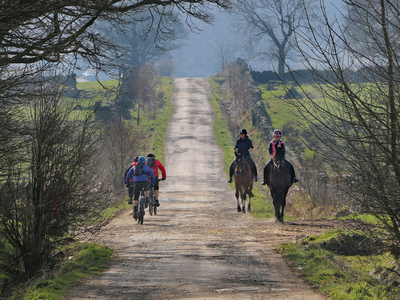 Ha autó közeledik a csapathoz, akkor a vezető oldalra kinyújtott karjának lassú le-fel mozgatásával kéri az autóst, hogy lassítson, amit a legtöbbjük megért, és megáll vagy lelassít. Sajnos kivételek is vannak, ami veszélyes a lóra és a lovasra nézve is, de a karosszériásnak is okozhat komoly munkát.
