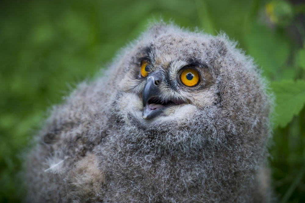 Alig egy hónapja kelt ki a tojásból a kis Doktor Bubó, máris szinte átlagos felnőtt csirkenagyságú.