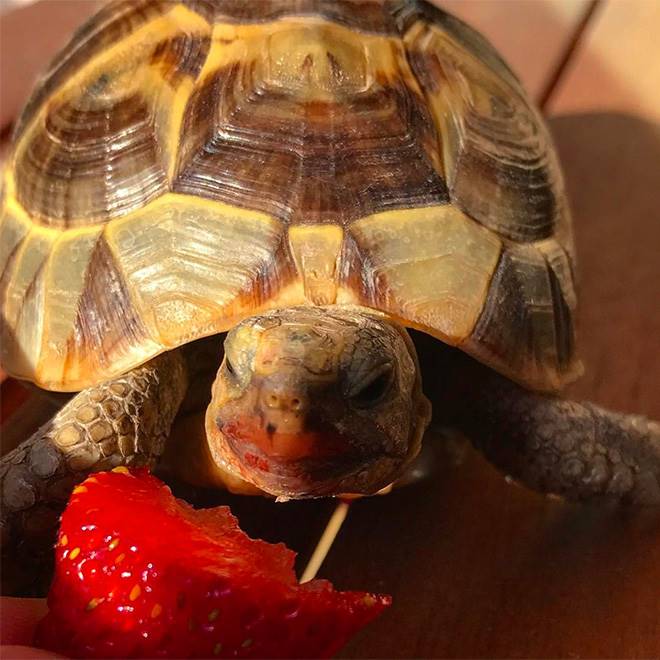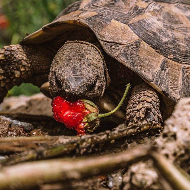 A szárazföldi teknősök túlnyomó többsége növényevő, így nem nehéz a kedvükben járni a szamócával. Mivel egyébként igen csendes állatok, maximum csak a jóízű csámcsogásukat hallhatjuk.