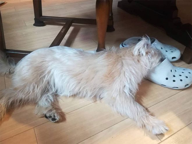 A kutyák különleges kötődése a gazdi holmijaihoz leginkább a lábbeliknél tapasztalható. Egy pulcsi vagy egy nadrág is megteszi, de mégis inkább a papucs vagy cipő az, amit elsőként ellopnak. Jó rágcsálni, jó dédelgetni, jó ráfeküdni és úgy tűnik, beledugni az orrukat is. Jobb esetben nem tapasztalnak kellemetlen szagokat, vagy lehet, hogy pont attól olyan csalogató? Mindenesetre nagyon aranyosak mamusszal az orrukon.