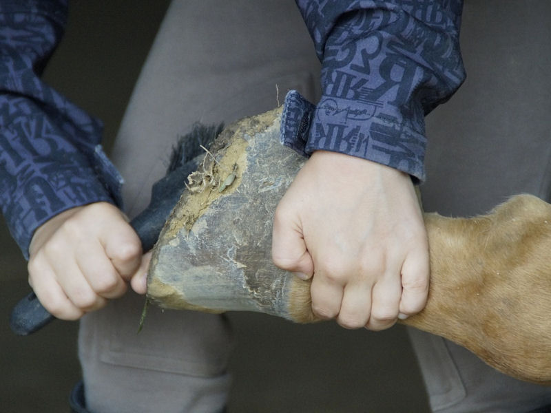 A csikót egészen fiatalon szoktassuk a patafeladáshoz, a patatisztításhoz. Így minden ellenkezés nélkül tűrni fogja majd a pata reszelését, faragását, amellyel a túlnőtt szarutól szabadítjuk meg.