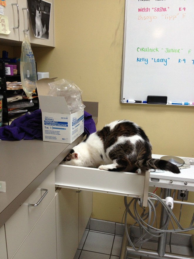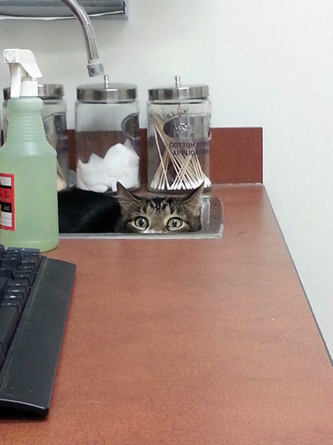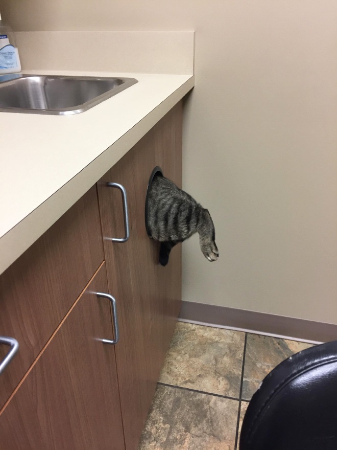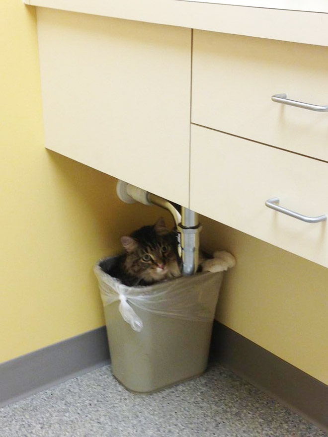 Sok macska már otthon sejti, hogy miről van szó, ezért mindent megtesz, hogy megússza. Persze egy kitartó gazdi ennek ellenére valahogy eljut kedvencével az állatorvoshoz, ahol aztán újabb kihívások elé néz. A szőrös kis kedvencek képesek a pillanat törtrésze alatt köddé válni és megpróbálni elrejtőzni, például így: