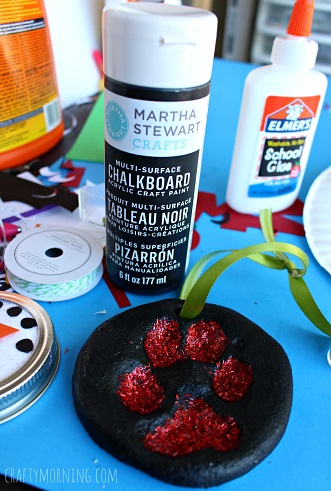 Amikor kihűl, kezdődhet a díszítés. Festheted pl. akrilfestékkel és díszítheted csillámporral. Fűzz fonalat vagy szalagot a lyukba és már mehet is a fára!