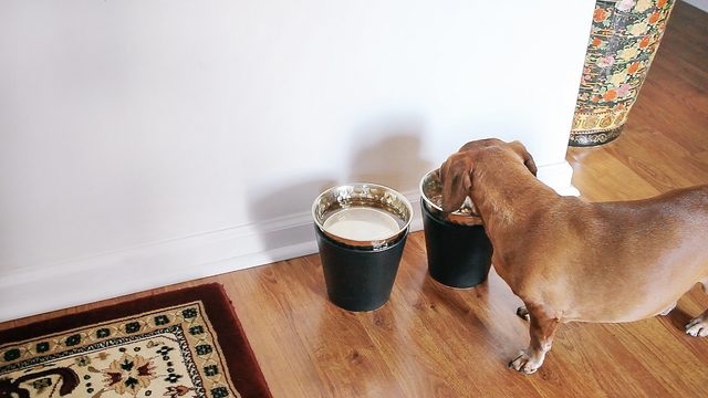 Vödrökkel, dobozzal, bármivel emeld számára kényelmes magasságba a vizét és ennivalóját, így kevesebbet kell hajolgatnia, amiért nagyon hálás lesz.