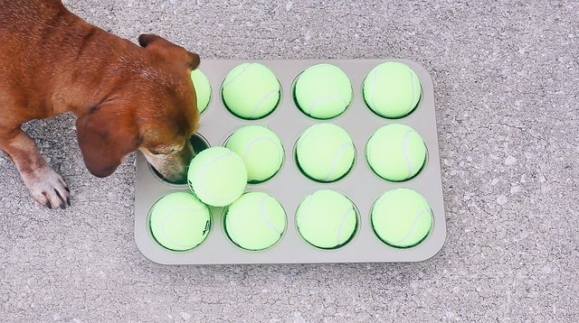 Bár sokat szelídült az évek alatt, játszani még mindig szeret. Ha egy muffin sütőtepsibe találomra finom falatkákat rejtesz el, amit teniszlabdákkal fedsz el, kicsit karbantarthatod az érzékszerveit úgy, hogy közben jól is szórakozik.