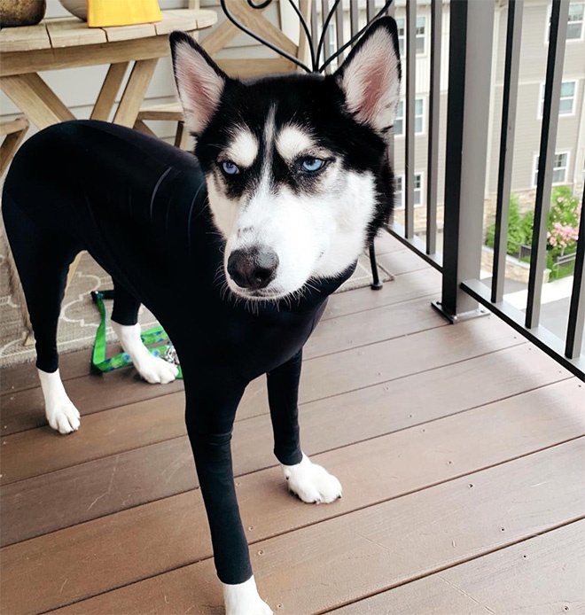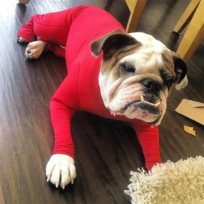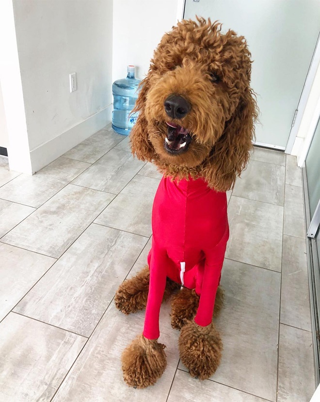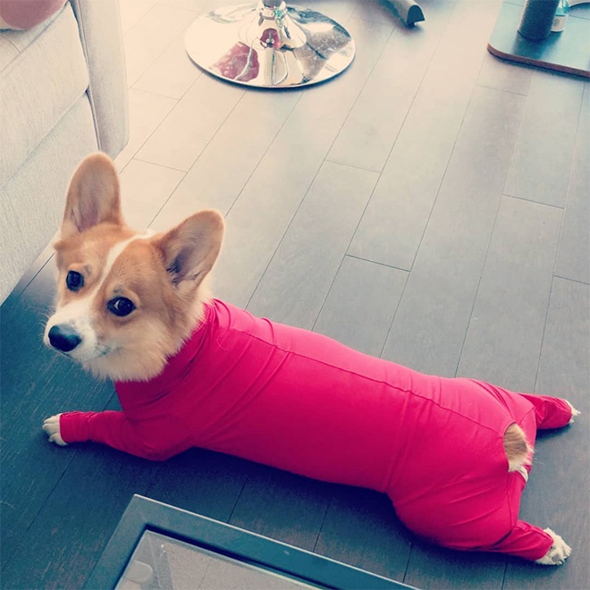 Mielőtt kitörne a felháborodás és mindenki elkezdené sajnálni ezeket a kutyusokat, egy ilyen dressz segít a szorongás kezelésében az idegesebb kutyusoknál, illetve műtétek után szokták viselni a seb védelmében. Talán kényelmesebb, mint a nyakra húzott búra, de mindenképp csinosabb. Valószínű a kutyáknak is kényelmesebb: