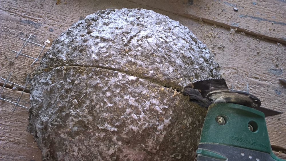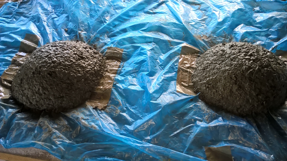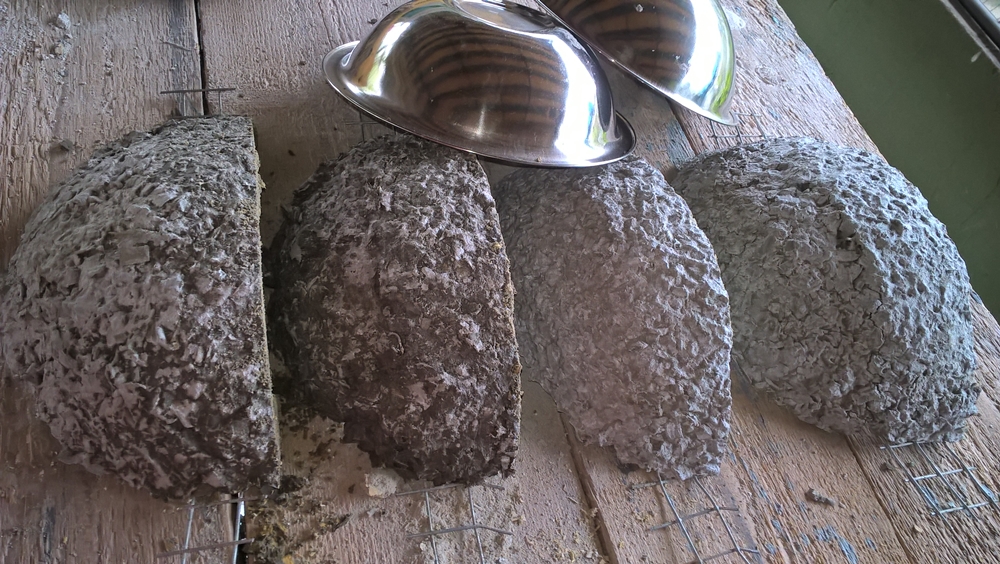 Nagyjáról egy hét alatt száradt meg a massza, jó kemény lett, ekkor leemeltem a tálkákról és félbevágtam mindkettőt.