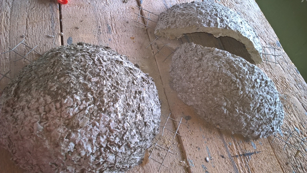 Így lett négy negyed-gömbcikkelyem. A kilógó fémhálónál gond nélkül fel lehetett fúrni.