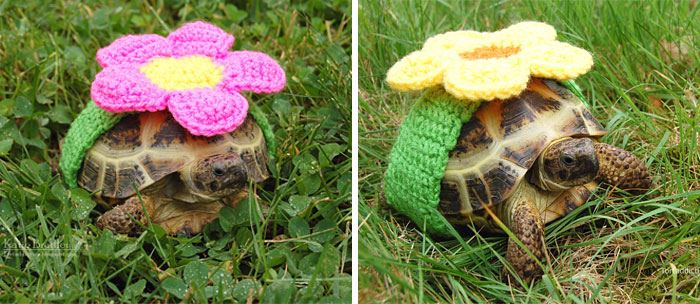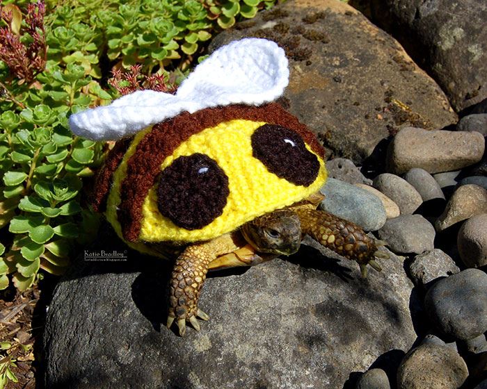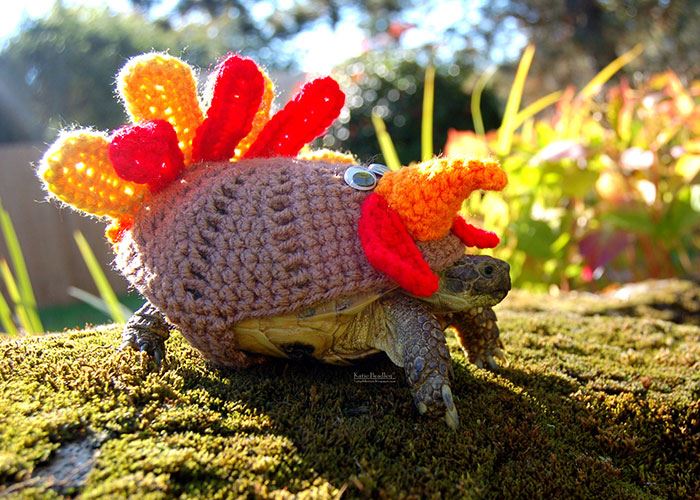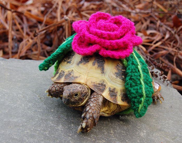 Katie családjánál jelenleg hét teknős lakik, de nem csak róluk gondoskodnak, hanem ha a szükség úgy hozza, mentik is fajtársaikat. Katie horgolni kezdett, és megnyitotta online boltját az Etsy-n, hogy plusz pénzt gyűjtsön a teknősök számára. A bájos, teknősök számára készített ruhák és minták gyorsan népszerűek lettek, így Katie-nek rengeteg megrendelése érkezett.