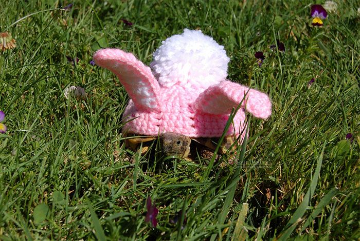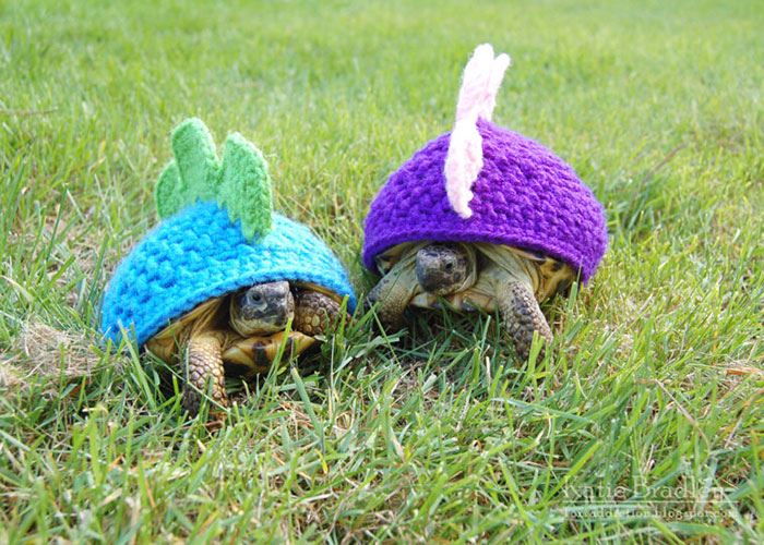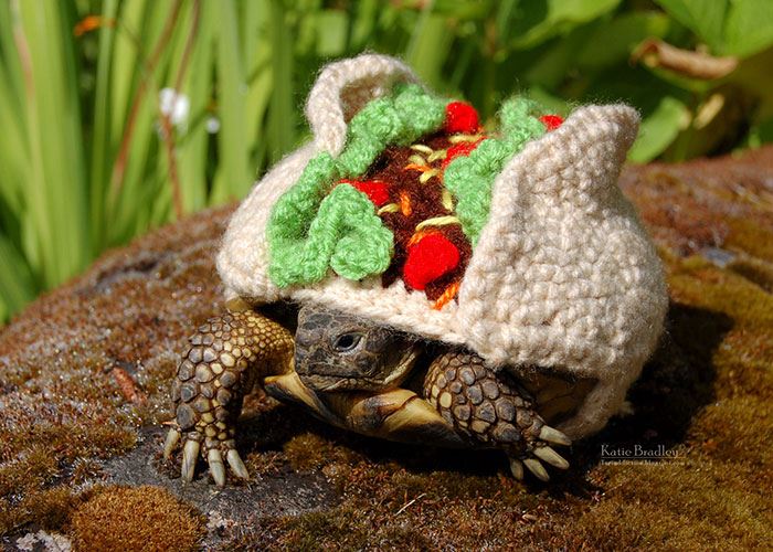 Katie Bradley, művész, illusztrátor és teknősrajongó az Egyesült Államokban, Vancouverben él. Szenvedélye, hogy teknősök számára különlegesebbnél különlegesebb jelmezeket horgol.