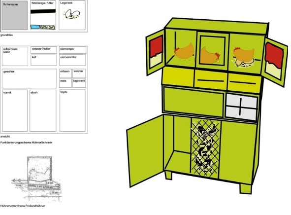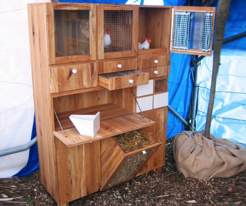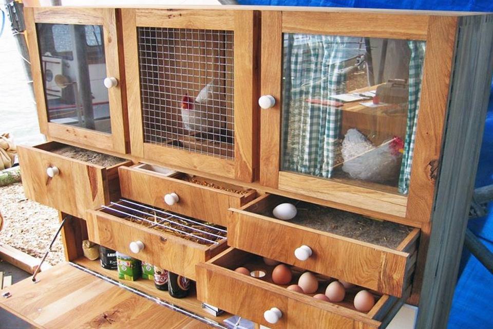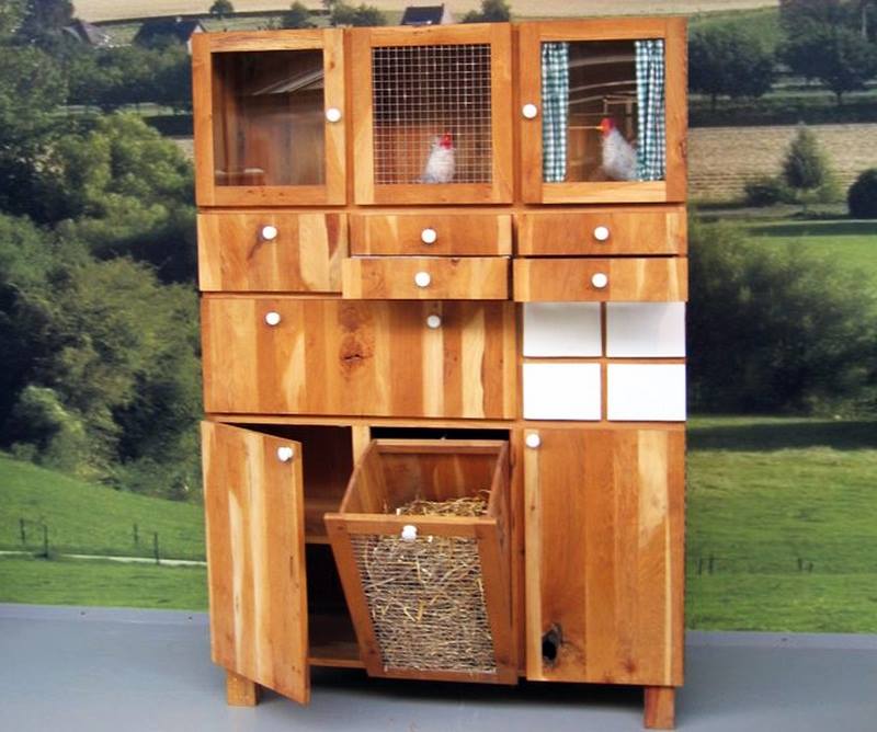 Azért az elgondolkodtató, hogy vajon a csirkék mennyire érzik jól magukat a szekrényajtók mögötti szűkös területen.