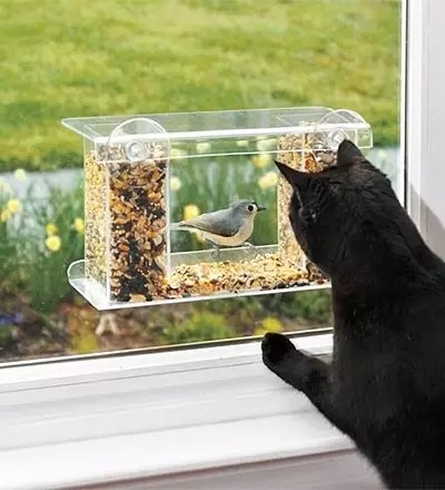De még ennél is izgalmasabb lehet számára, az átlátszó madáretető. Gyakorlatilag házimozi az ablakból.