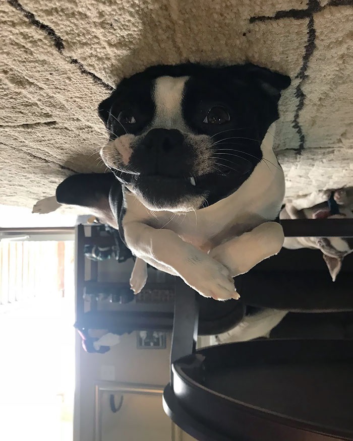 A padlón szunyókáló kedvencéről készült képet, ami alapból cuki, fordította meg. Így viszont már olyan egy kutyus, mintha felszállt volna, mint egy héliumos lufi. Bájos a végeredmény, nézd csak: