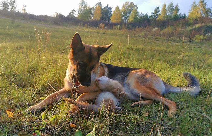 Nova, a német juhász nagyon barátságos volt minden állattal.