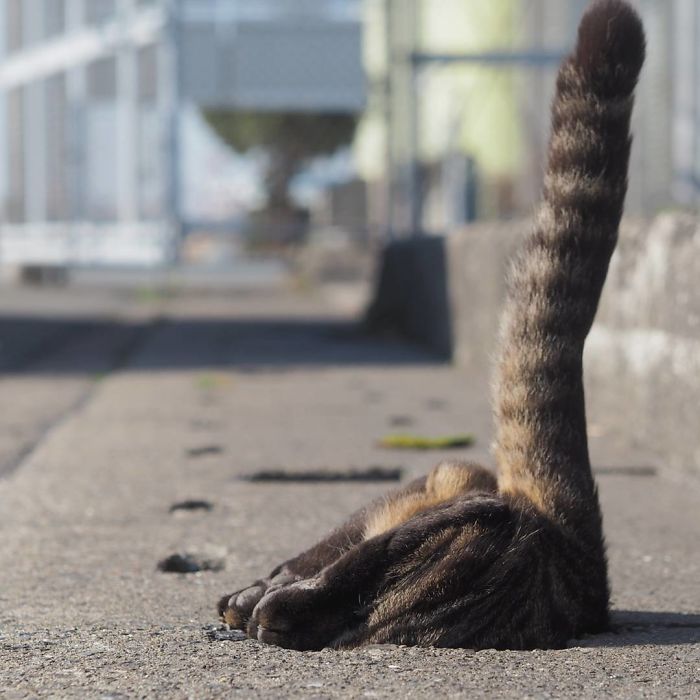 Japánban az utakat sok helyen lyukak borítják a vízelvezetéshez. Ezt használják a cicák játszótérnek.