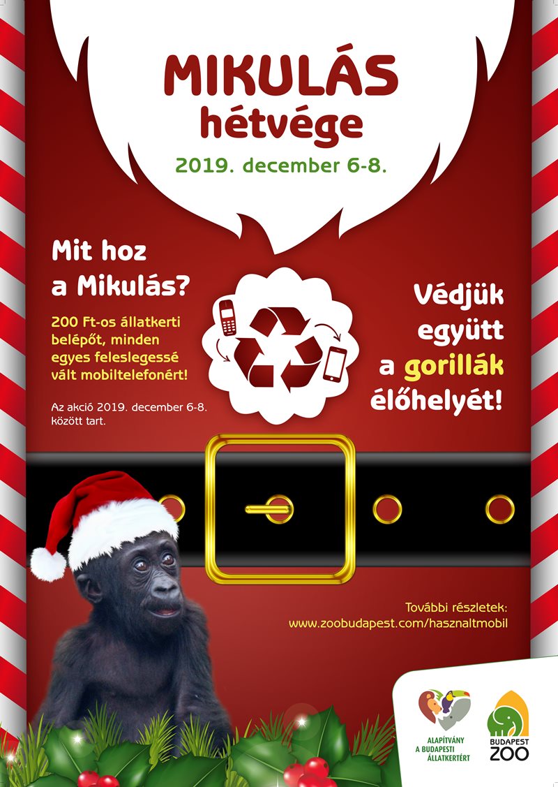 A Mikulás hétvége alkalmával, 2019. december 6. és 8. között, minden használt mobiltelefon leadásáért cserébe fejenként 1 db kedvezményes, 200 Ft-os állatkerti belépőjegyet adnak.