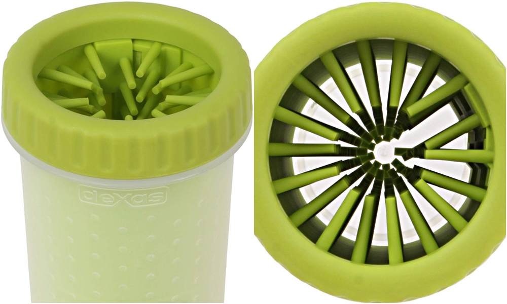 Az Amazonon azonban találtunk kimondottan a mancsok takarítására szolgáló praktikus kis eszközt. Ez egy műanyagpohárra hasonlít, amiben puha, szilikonsörték takarítják le a piszkos tappancsokat némi víz segítségével.