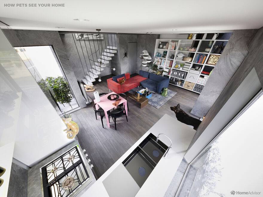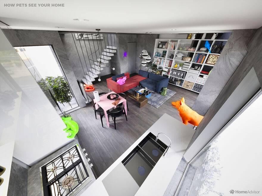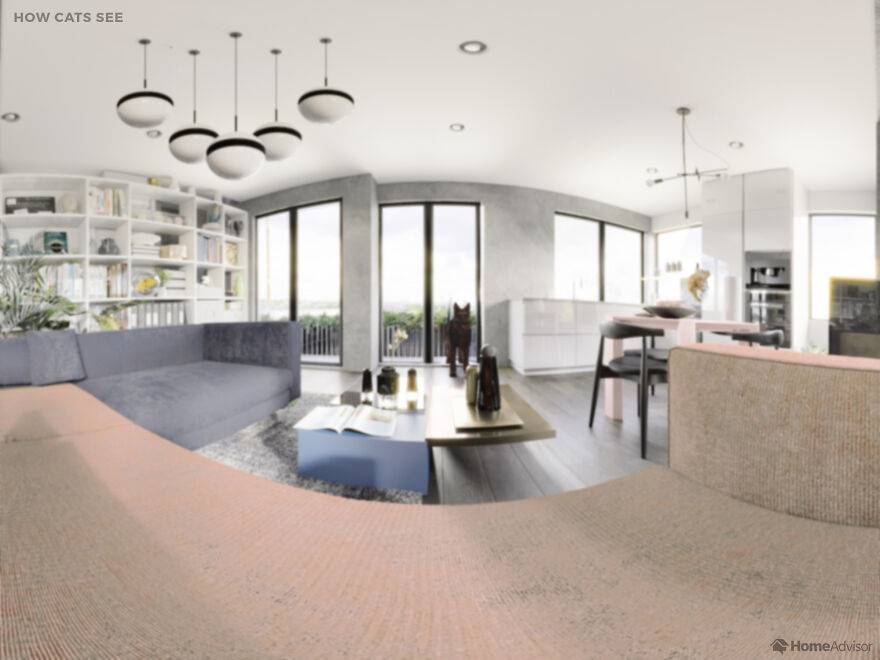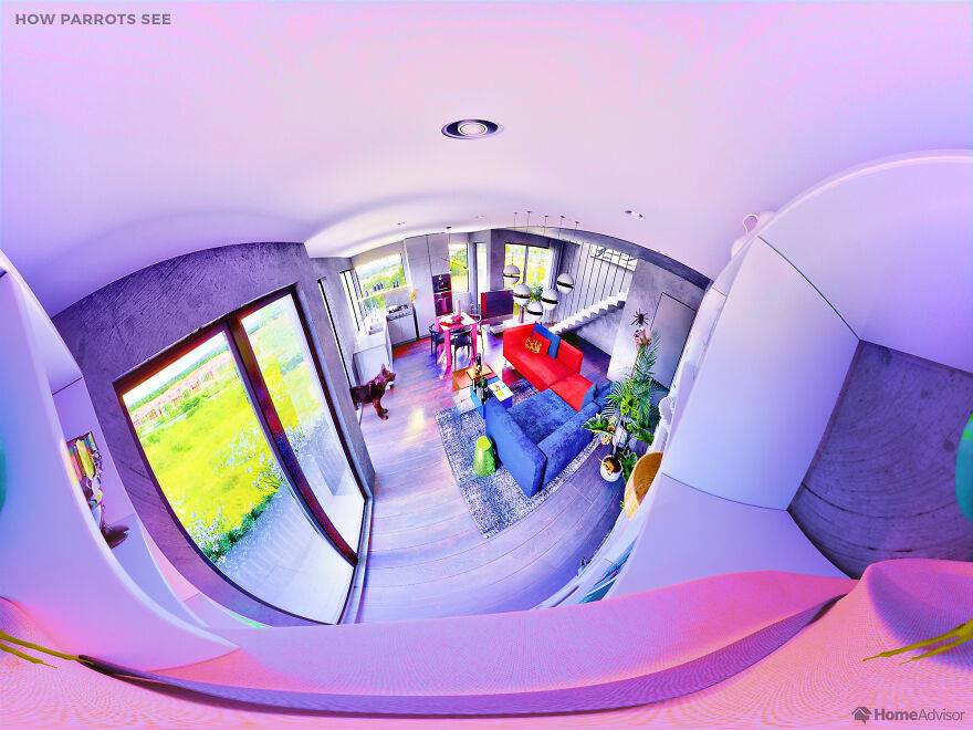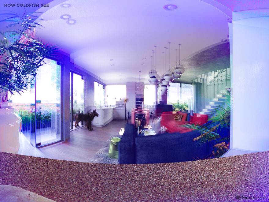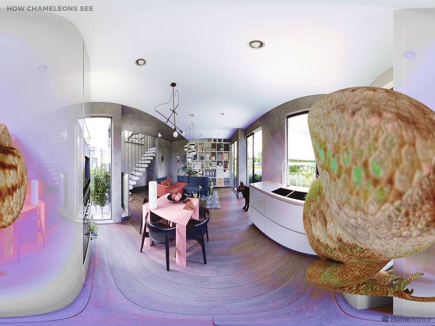 Mivel mi a saját szemünkön át látjuk a világot, így nem kaphatunk teljes képet az ő látásmódjukról, de a Home Advisor egy projekt keretében próbálja megmutatni az eddig ismert adatok alapján. A virtuális szobában egy kutya, egy macska, egy aranyhal, egy kaméleon, egy kígyó, egy pók és egy papagáj van.