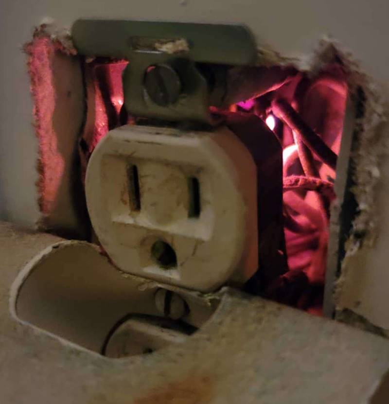 Körülnézett a házban, míg végül meglett Willow a dolgozószobában, az asztal alatt. A kutya látszólag ideges volt, ugatott, és nem volt hajlandó kijönni az asztal alól. Nem volt csóválás, nem volt öröm, mint máskor, hanem makacsul ragaszkodott ahhoz a helyhez. A nő nem értette, miért viselkedik így az eb, amíg meg nem érintette a falat, ami meleg volt. Az asztal alatti konnektor falba süllyesztett szerelődobozában izzottak a vezetékek.