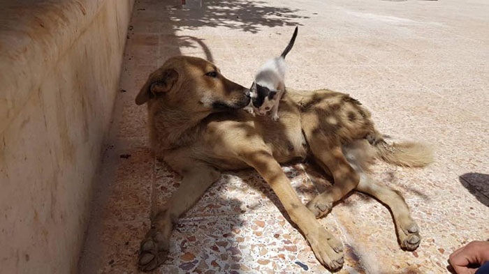 A bolyhos kiscica közel merészkedett a szomorú anyakutyához és dörgölőzni kezdett. Az volt a pillanat, ahol elkezdődött a különleges kapcsolatuk.