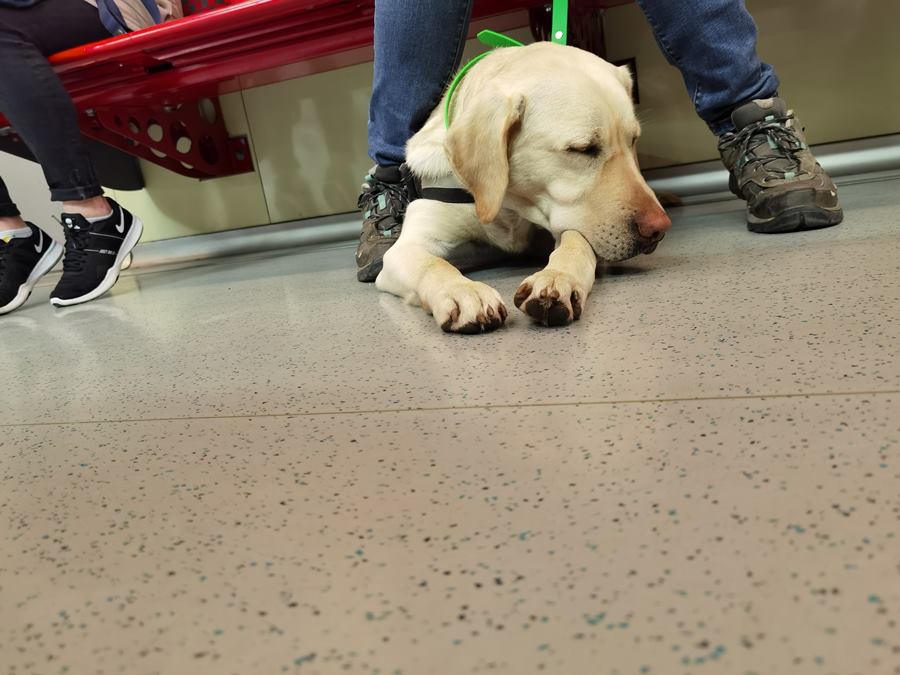 Nóra a Bikás parktól a Nyugati pályaudvarig tartó útvonalát mutatta meg nekünk. A metrónál a lifthez mentek, azért nem a mozgólépcsőt használják, mert balesetveszélyes, vigyázni kell a kutyák körmére. Torma magabiztosan vezetett az aluljáróban, a metrókocsiban pihengetett, nézelődött, azután a Kálvin téren két olyan érdekességet mutatott nekünk, amit Nóra tanított meg neki. Egy szóval megkérte Tormát, hogy egy általuk látogatott pékséghez vezesse, kutyája megértette, és azonnal odavitte. Nóra vett egy kávét, majd amikor tovább indultak, kutyája a „kukát keres” kérésnek is eleget tett.