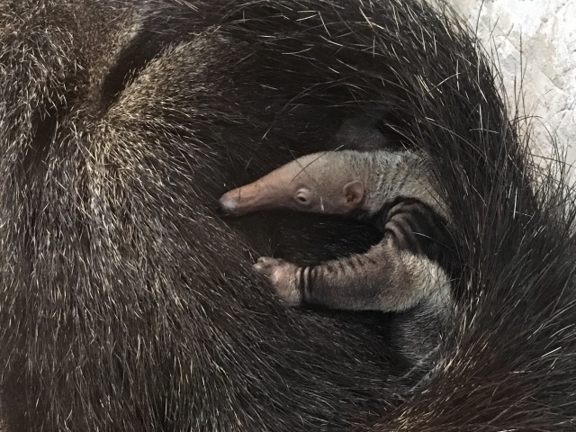 Néhány nappal ezelőtt hozta világra a Nyíregyházi Állatparkban kicsinyét az ötéves Manka névre hallgató sörényes hangyász. A különös külsejű állat bébije alig 20 perccel születése után már anyja hátán lovagolt.