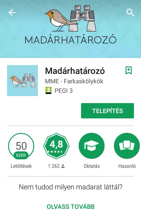 Ha nem, akkor is van megoldás. Az MME és a Farkaskölykök Ifjúsági Egyesület közös madárhatározó alkalmazása segíthet. A mobilok korában, amikor okostelefonunk mindig kéznél van rengeteget tanulhatunk egy ilyen fejlesztés által.