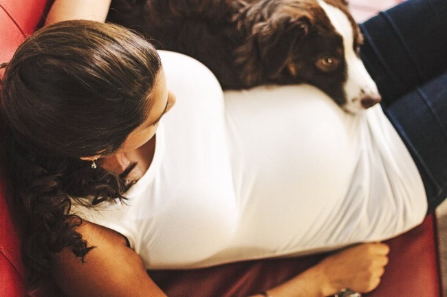 A pocakban növő apróságokat azonban nem csak a szülők várják, hanem a kedvencek is. Biztos, hogy érzik és tudják, hogy valaki lakik ott bent. A gazdihoz mindig szívesen bújnak a kutyusok, de a kismamákhoz valahogy még óvatosabban simulnak. Gyönyörű képek: