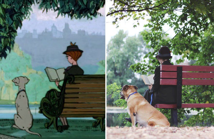 Emlékszünk arra a jelenetre, amikor Pongó és Perdita összehozzák a gazdáikat? Ezt a jelenetet idézte fel Tony és Corinne a saját kutyáikkal. Bár sem Mookie, sem Izabella nem dalmaták, a képek, amelyeket Corinne unokatestvére, a profi fotós Melissa Biggerstaff készített, mégis csodálatosak lettek. A kutyák és a szerelmesek is élvezték a fotózást, az emléket állító albumba sok remek kép készült. Tényleg olyanra sikerült, amit majd szívesen mutogathatnak az unokáiknak is. Megvalósították az álmukat, ami tényleg meseszerű lett: