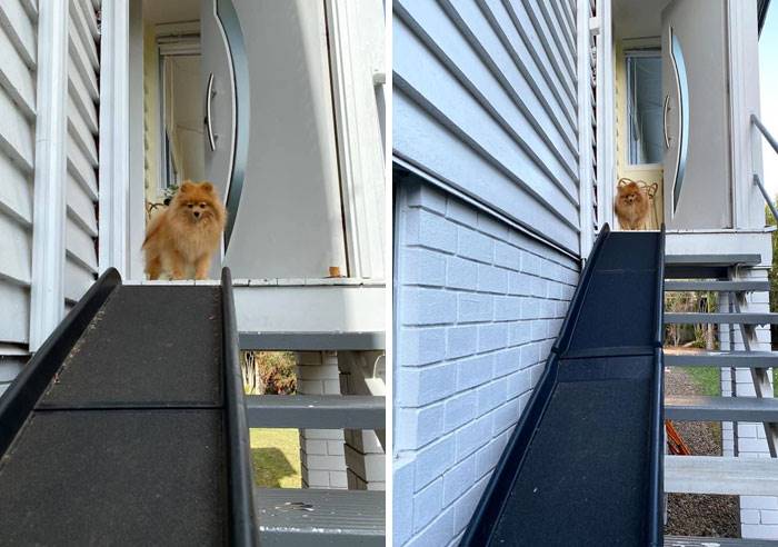 A rámpák és kutyaajtók sem ritkák, hogy a lépcsőn nehézkesen közlekedő állatoknak könnyebb legyen az életük.