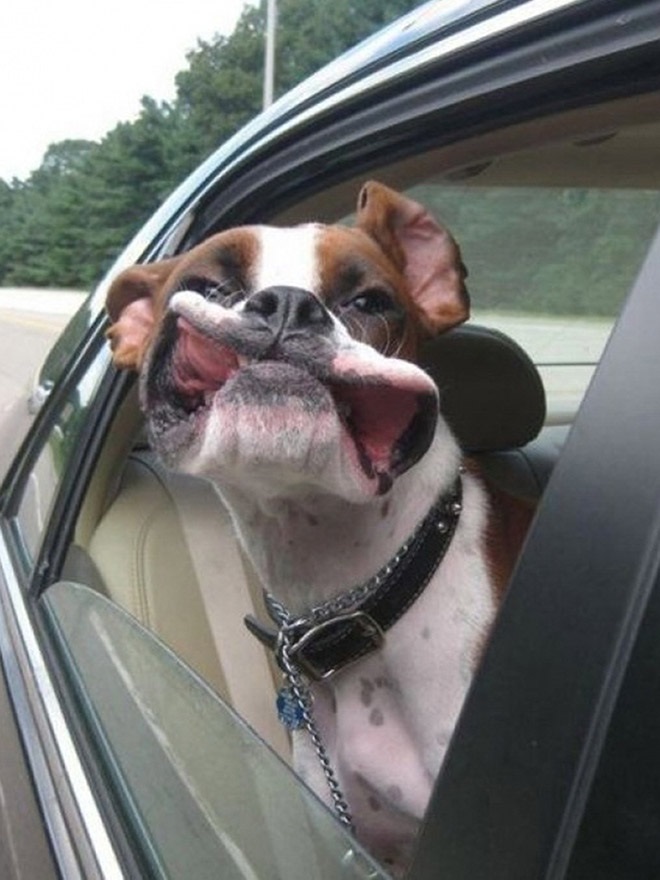 Az egyik ilyen, amikor útközben kidugják a fejüket az autó ablakán. Nem lenne muszáj, de valahogy úgy tűnik élvezik. Mi meg azt, ahogy ilyenkor kinéznek. Ennél viccesebb ma már nem lesz: