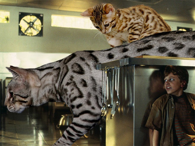 A modern technika vívmányainak hála azonban az ilyesmi nem csak a fantáziánkban jelenhet meg, hanem képeken is. Egy ilyen elképzelés látott napvilágot, amikor valaki a Photoshop-tudását felhasználva megalkotta a Cat Parkot, azaz azt a mesevilágot, ami a dinoszauruszokat macskákra cseréli.